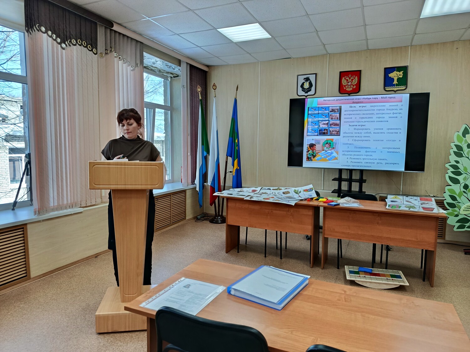 27 февраля в актовом зале управления образования, молодёжной политики и спорта состоялось очередное заседание муниципального экспертного совета, на котором были представлены инновационные разработки педагогов Амурска, призванные обогатить образовательный процесс и сделать его более эффективным. Свои проекты представили сразу несколько специалистов, продемонстрировав широкий спектр подходов к обучению и развитию детей: -Салова Татьяна Владимировна, учитель русского языка и литературы МБОУ СОШ № 5 г. Амурска. Она представила рабочую программу курса внеурочной деятельности «Вдохновение». Этот курс, по замыслу автора, призван раскрыть творческий потенциал школьников, углубить их знания в области литературы и искусства, а также развить навыки критического мышления и самовыражения; - Демидова Наталья Николаевна, учитель-логопед МБДОУ № 15 г. Амурска. Ее методическая разработка «Применение балансировочной доски Бильгоу в коррекционно-развивающей работе с детьми с ТНР» вызвала живой интерес у членов совета. Наталья Николаевна подробно рассказала о возможностях использования этого инновационного инструмента для коррекции речевых нарушений у детей с тяжелыми нарушениями речи; -Педагогический коллектив МБДОУ № 9 г. Амурска, представил сборник материалов «Использование авторских дидактических игр для закрепления у детей старшего дошкольного возраста исторических представлений о родном городе». Авторские дидактические игры, разработанные педагогами, позволяют в увлекательной форме знакомить малышей с историческими фактами, достопримечательностями и традициями Амурска, способствуя развитию их познавательной активности и патриотического воспитания. | |